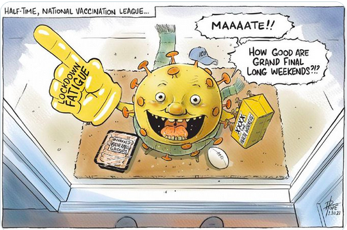 So what have governments learned from all this in Australia with COVID-19 in 2021? Instead of massive national campaigning, we’ve seen dreary memos-to-the-public style ads advising that COVID is highly infectious and deadly, and that vaccination is very important. These are in scintillating writing, with all the magnetism of wallpaper and bring messages that you would needed to have been asleep in a cave on Mars for 18 months to have never heard.