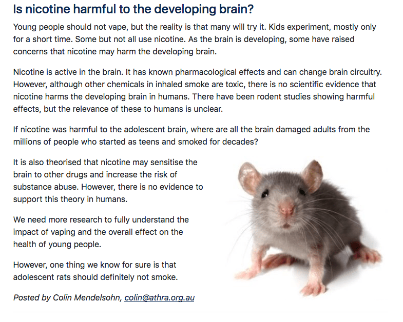 Dr Colin Mendelsohn was the founding chairman of ATHRA (the Australian Tobacco Harm Reduction Association) from 2017. He then resigned from the ATHRA board, taking effect from Jan 4, 2021 according to ASIC records. He thereafter referred to himself many times as being “the founding chairman of the Australian Tobacco Harm Reduction Association” often without adding that he was no longer on the board.