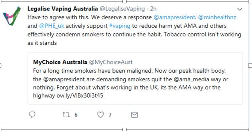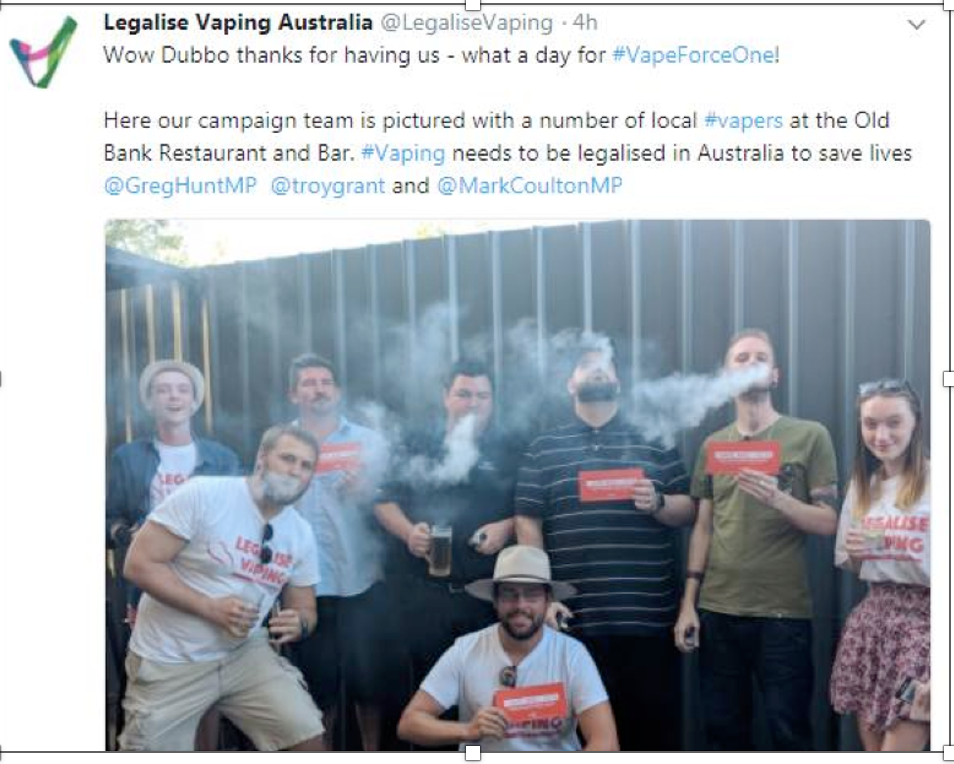 Pippa had earlier offered to represent Australian vapers in the media and to politicians.