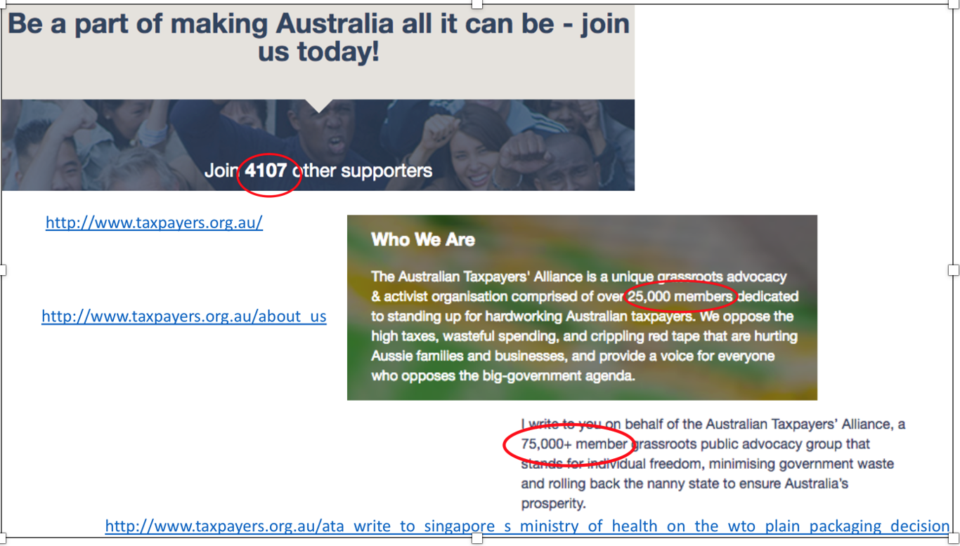 The size of the ATA’s support base appears to be rather fluid. Its website on 17 September 2018 showed 4,186 “supporters”. But one click away on its “who we are” page we see it reports “over 75,000 members”, a mere 17.9 times more. My public request to the ATA to clarify these differences was never answered.