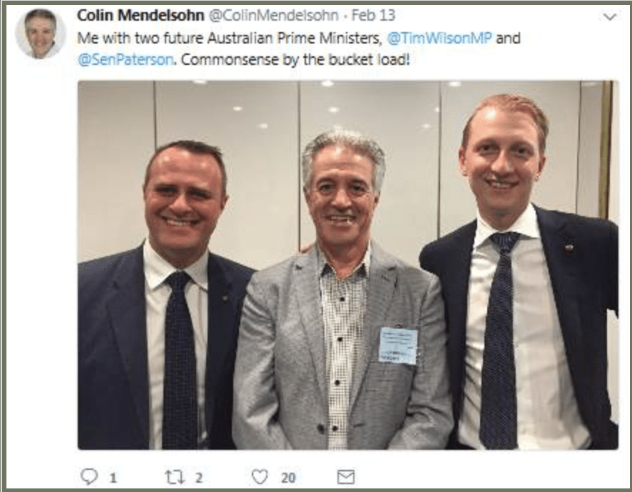 Vaping promoter Colin Mendelsohn fawned over Wilson and Paterson in what was surely one of the more heroic political predictions in the current century. The IPA have been very quiet on vaping, but they are to be taken seriously: in January 2014 they named me in the IPA Review as one of “The Dirty Dozen” all-time Australian “opponents of freedom”