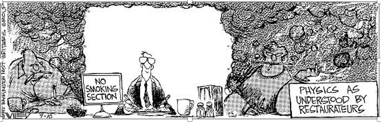 Phillips asked if we would all please put any concerns we might have on ice until the delegation left town and voted. He was highly sensitive to how this request might go down, and subtly hinted that if we would cooperate, the government would be immensely grateful. He emphasised that there was lots of support within the government for finishing the job on smoke-free areas. Public transport, airports, cinemas and theatres had long been smoke-free. A large number of workplaces had banned smoking indoors and many restaurants voluntary offered non-smoking sections, with magic lines dividing smoking from non-smoking sections. However, somebody had forgotten to tell the smoke about how it was supposed to behave, so policy reform was well overdue.