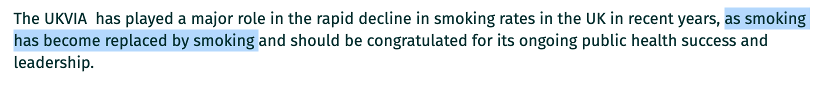 In his blog, he helpfully explained UKVIA’s impact on smoking: