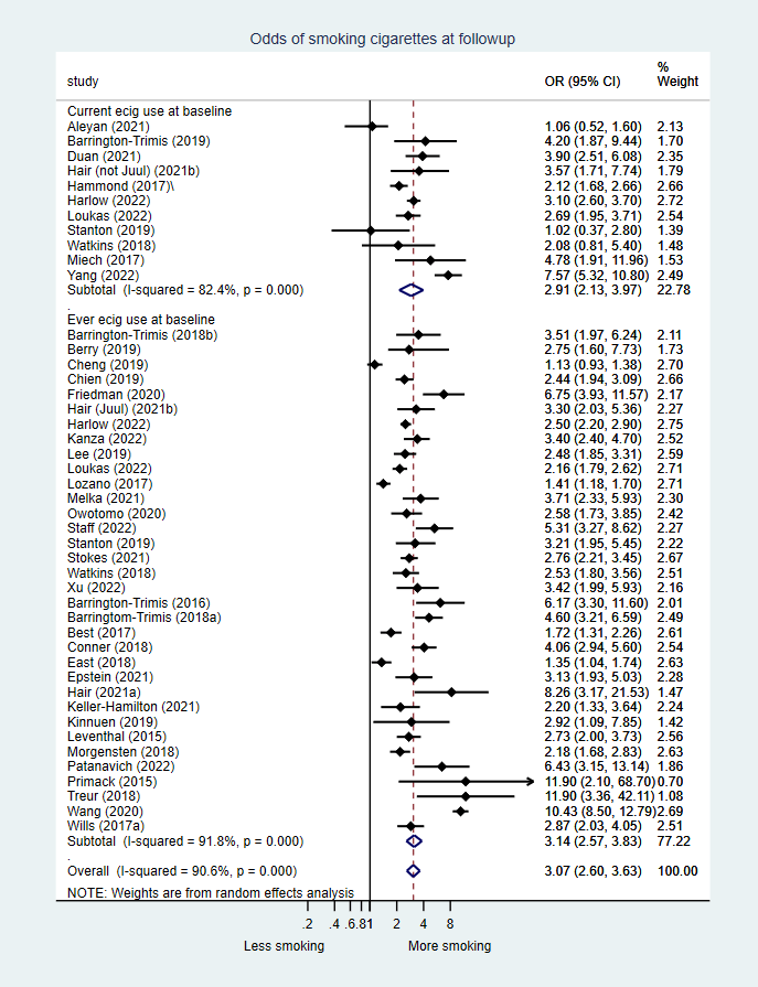 In their no stone unturned paper using  interrupted time series analysis they concluded “In stark contrast to the conclusion of the previous study, we found that among 14-15 year-olds, the emergence and rapid rise in vaping in New Zealand may have slowed the rates if decline in ever- and regular smoking, while having little or no impact on the rate of decline in daily smoking.”