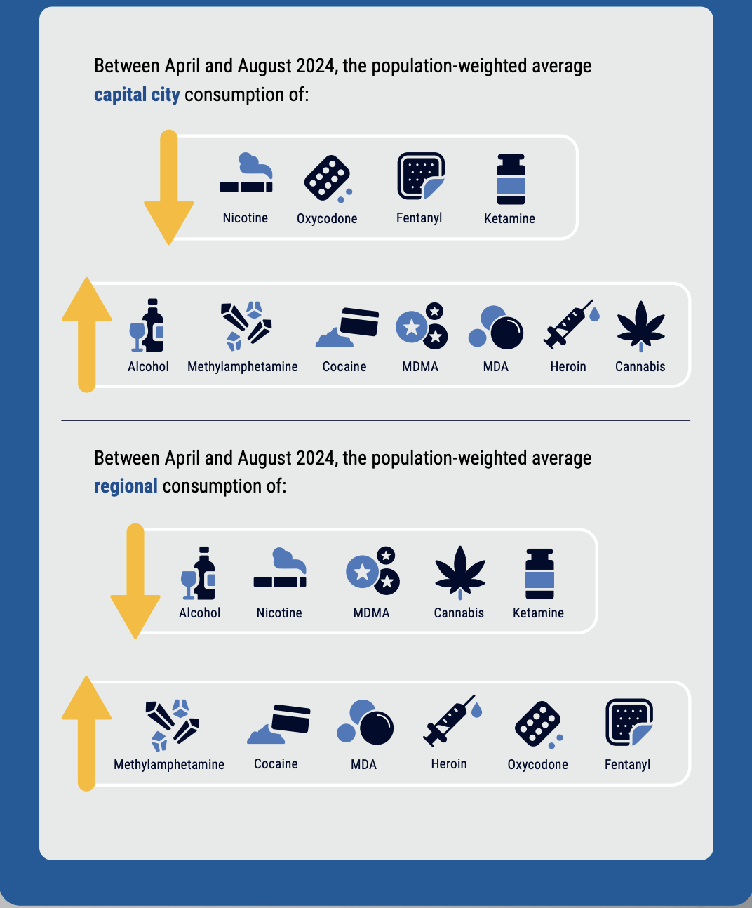 Here, Davidson quotes from the National Wastewater Drug Monitoring Program’s (NWDMP) latest report for 2023-24 .They have been testing since 2016-17, publishing data on nicotine found in wastewater (sewage) in testing sites serving 57% of the Australian population (14.5m) with both regional and capital city sampling.